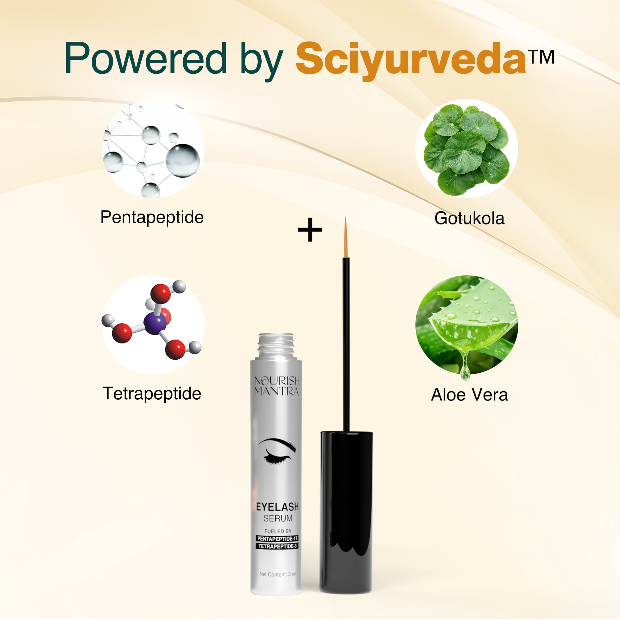 Transform your lashes with our Eyelash Growth Serum, a revolutionary blend powered by Sciyurveda™, where modern science meets time-tested Ayurvedic wisdom. This advanced formula combines Tetrapeptide, Pentapeptide, Gotukola, and Aloe Vera to deliver unmatched lash care that goes beyond the surface.
